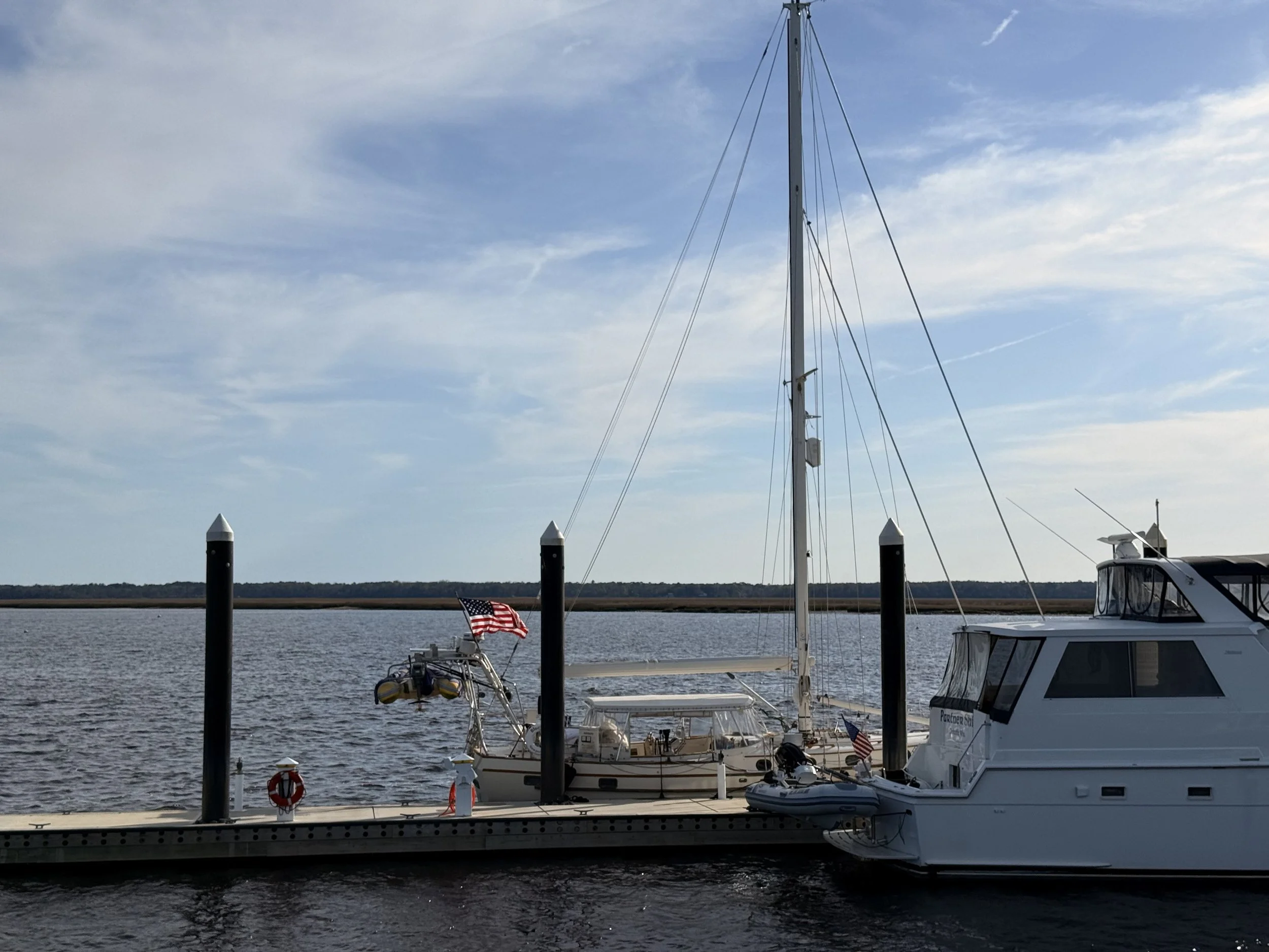 Tied up at the St. Mary’s Intracoastal Waterway marina, a town dock.