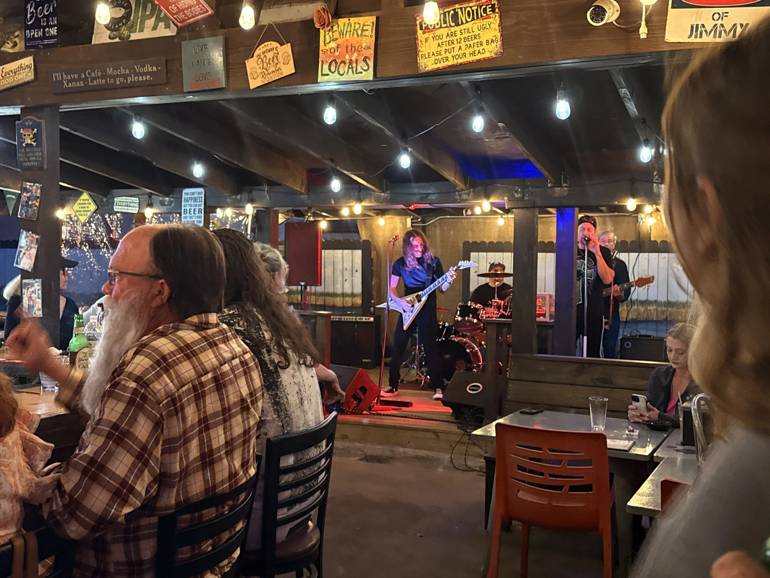 After a taco dinner, we stopped a local bar (one of two?), and caught some live music from a cover band that was far better than they had any right to be. The lead guitarist, despite his age, would have fit into any stadium-level 80s metal band. Talent and opportunity are not always conjoined, or perhaps this is where he wants to be, but it made for an unexpectedly fun night regardless. I’m not a particular fan of cover bands in general, but something about the place and company made it possible to set my cynicism aside for the evening.