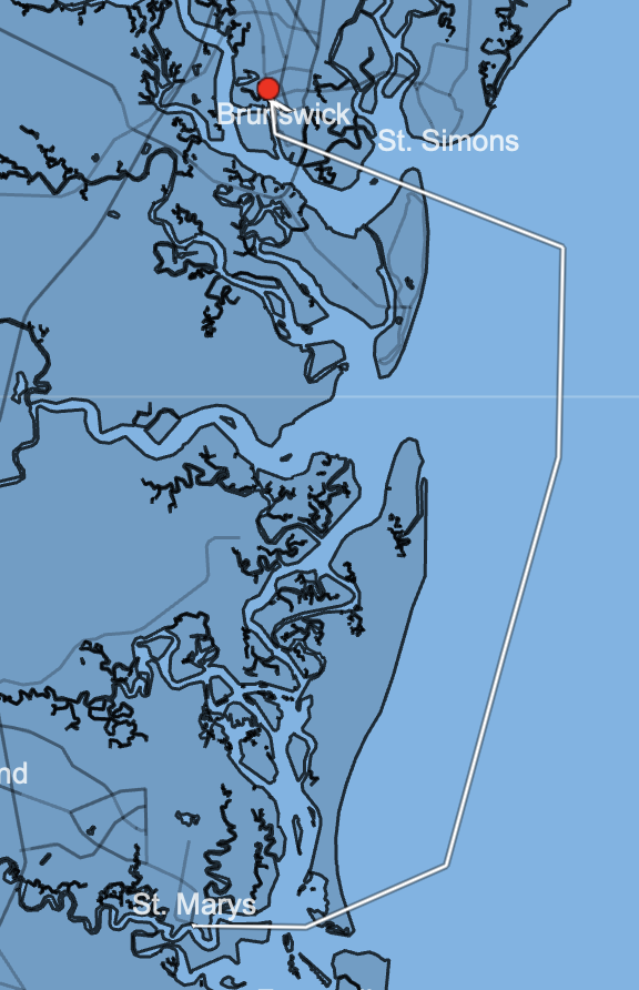 St. Mary’s is on the border between Georgia and Florida; situated on the St. Mary’s river, one can either take the ICW down from Brunswick, or head outside via St. Simon’s Sound and then back in via the St. Mary’s River. With reasonable weather, we elected to head outside - a bit of a risk, as there are no sails on board currently, but the engine was rebuilt in 2023 and I trusted it.