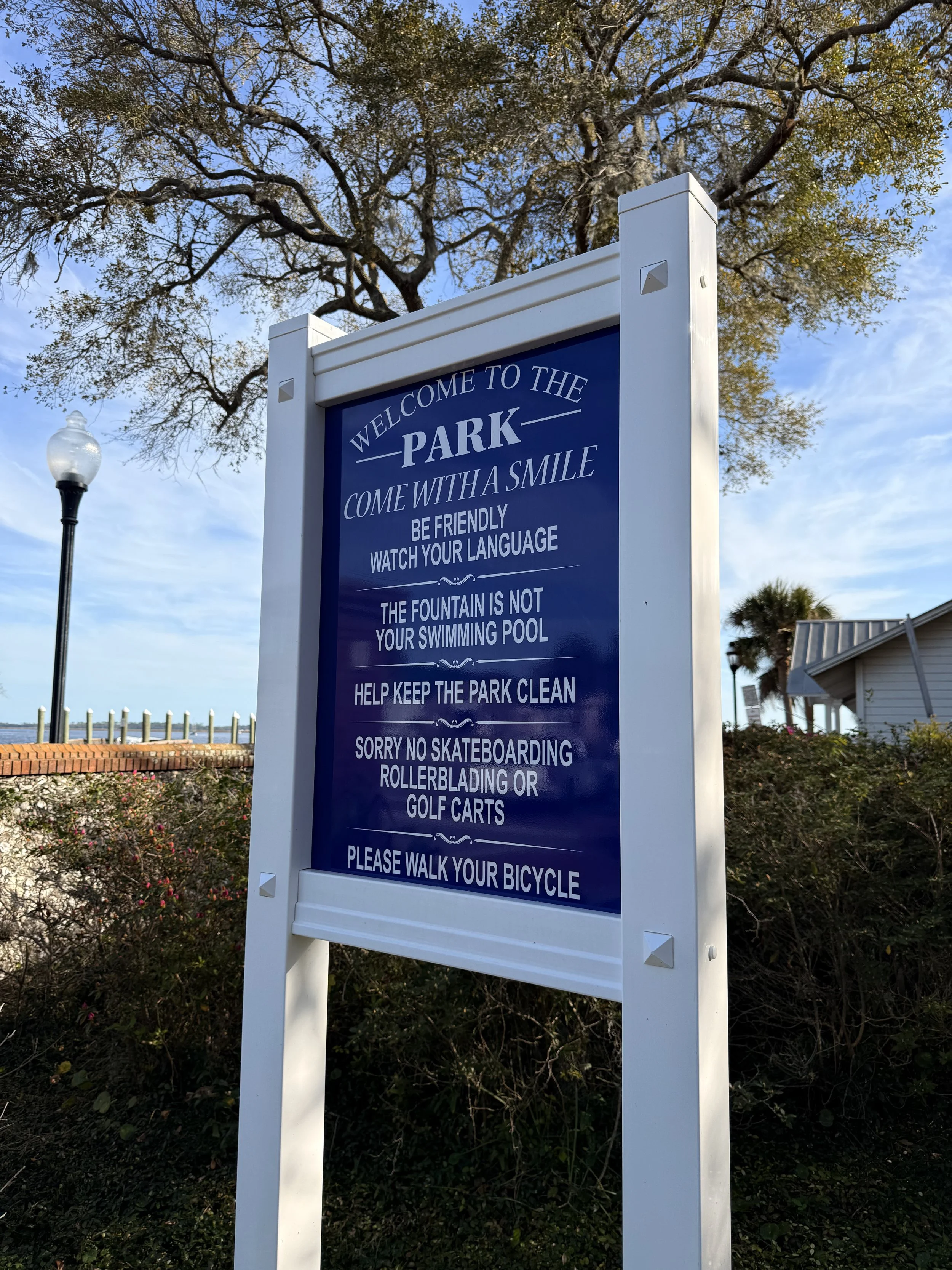 St. Mary’s is very small and very comfortable. We went for a pre-dinner walk, enjoying the quiet streets, southern architecture, and friendly vibes - mandated, apparently, by the signage in the town park.