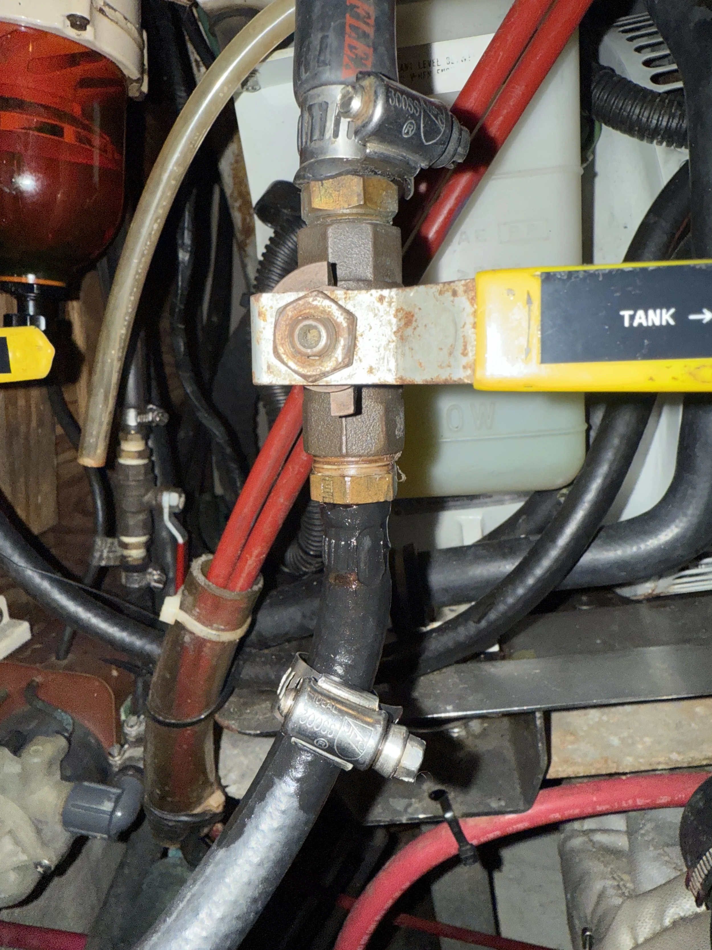 I started at the fuel fill hoses, which on Blue Turtle are located in a cockpit locker. Prior to Kim and Randy’s ownership, she was owned by Ralph and Cindy, who lived aboard and cruised her for 25 or so years. There are many thoughtful upgrades, and the fuel system is one.