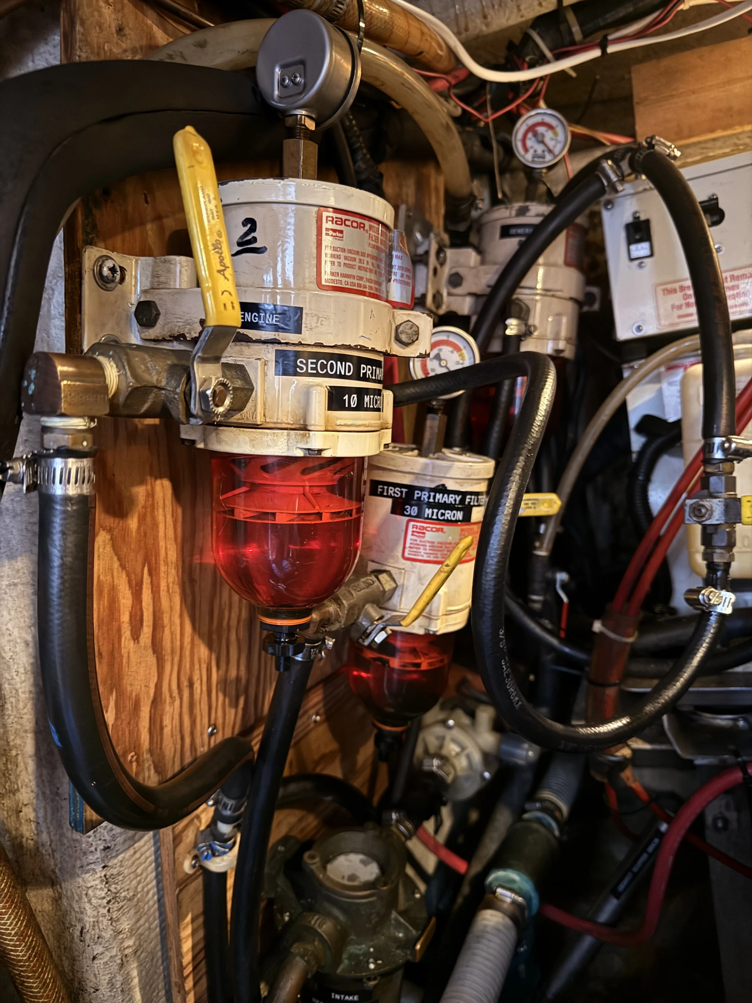 The Racor filtration setup in the engine room.
