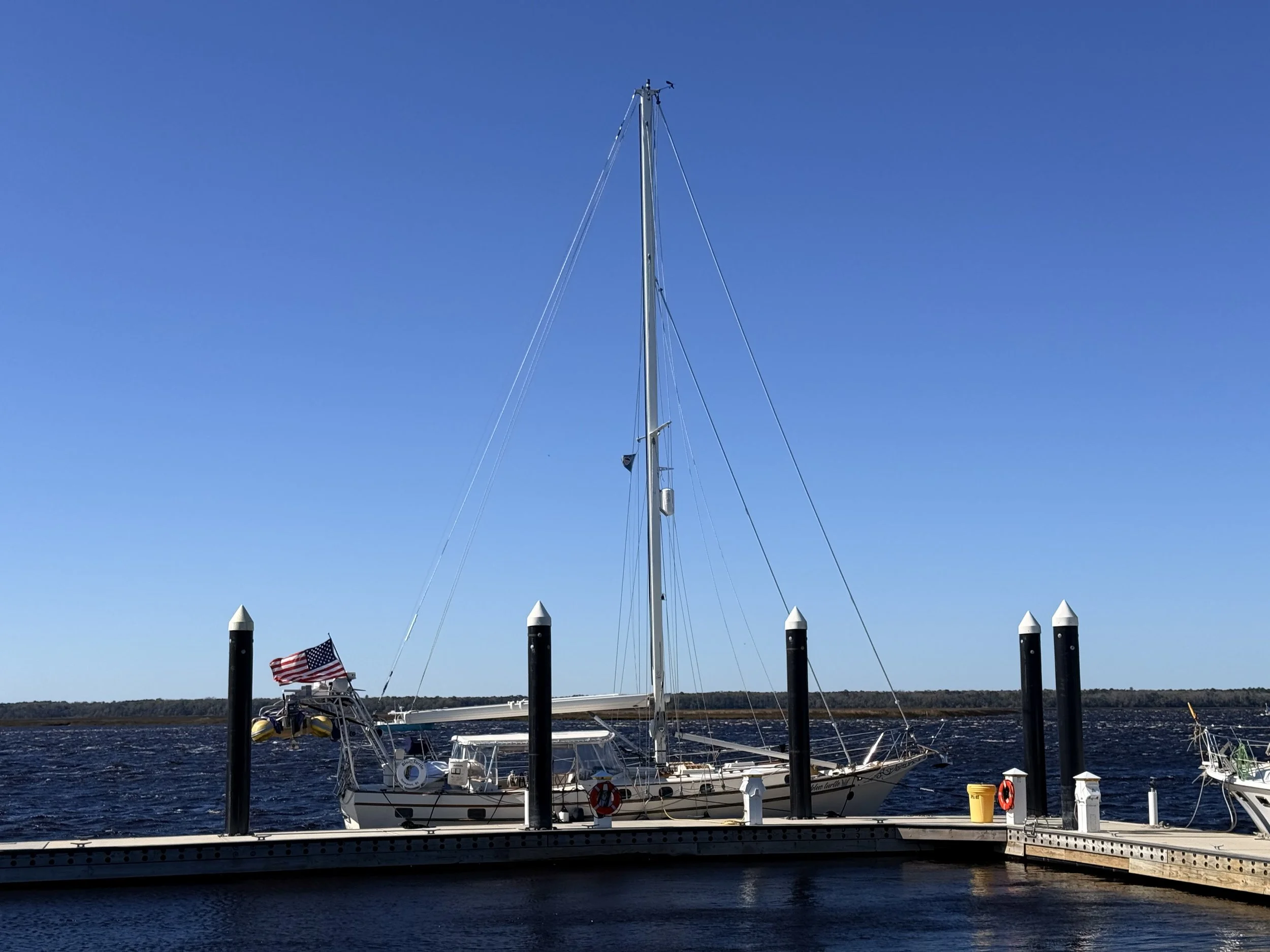 I called Brenton, and he agreed to come back up to help me move Blue to Rocky’s, where spinning her into the travel lift would likely require some fancy work with the lines, given how little space or water there was there to maneuver her around. I confirmed with Rocky that we’d arrive that Saturday, a few days away, and in the meantime I would hang out in St. Mary’s, tackle some small projects, and prepare.