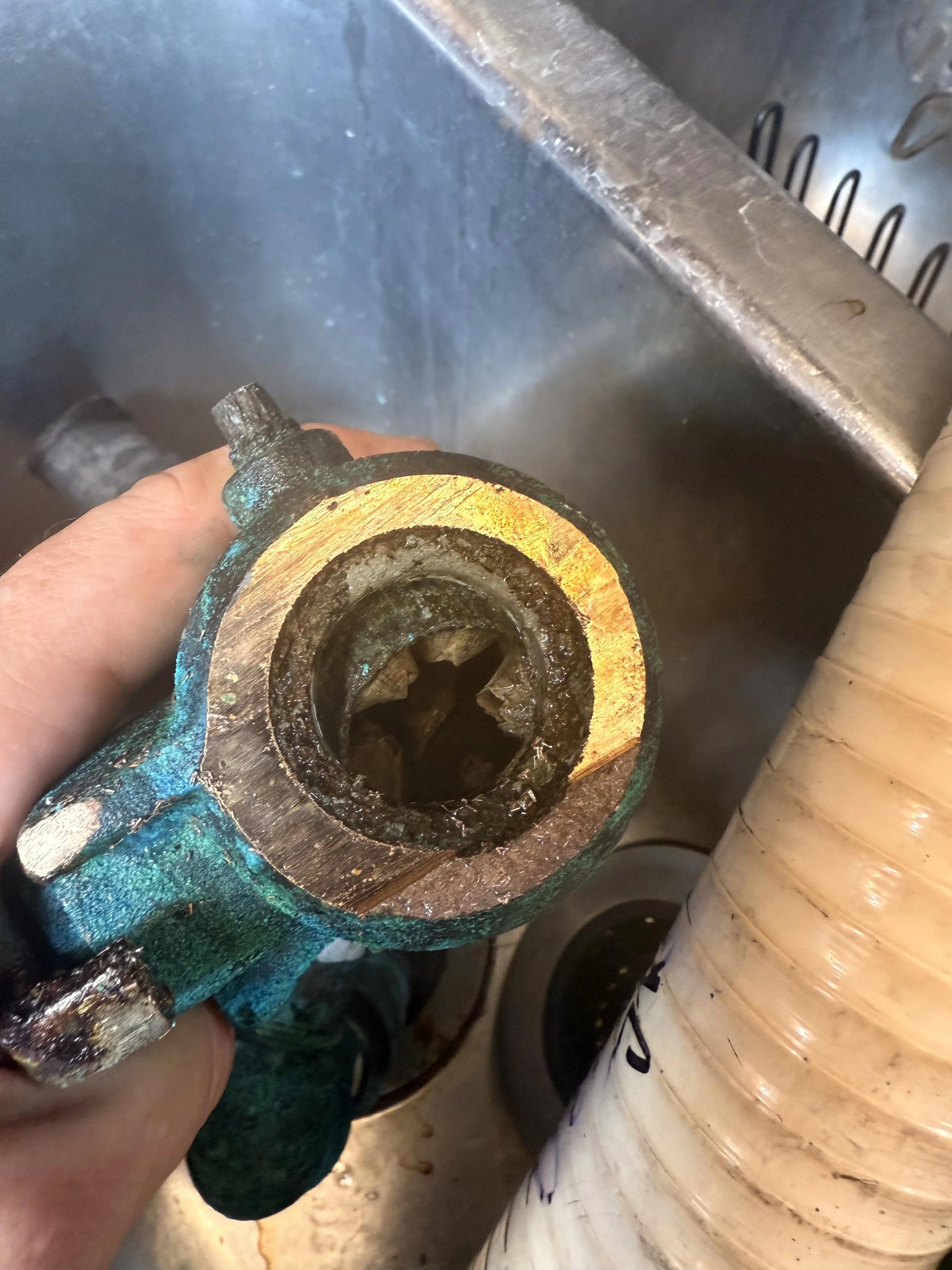 While working on this, we removed the old air conditioner pumps, and I have two magnetic pumps waiting to go in - far more reliable than the originals. We also discovered the likely reason for why the AC hasn’t been working - the through hull was full of barnacles!